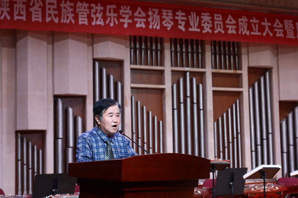 接下来,陕西省民族管弦乐学会会长徐光明发表了热情洋溢的致辞,并受陕西省政协副主席刘宽忍先生的委托代表刘宽忍先生向学会成立表达了祝贺。赵新芝会长代表扬琴专业委员会做了表态发言。