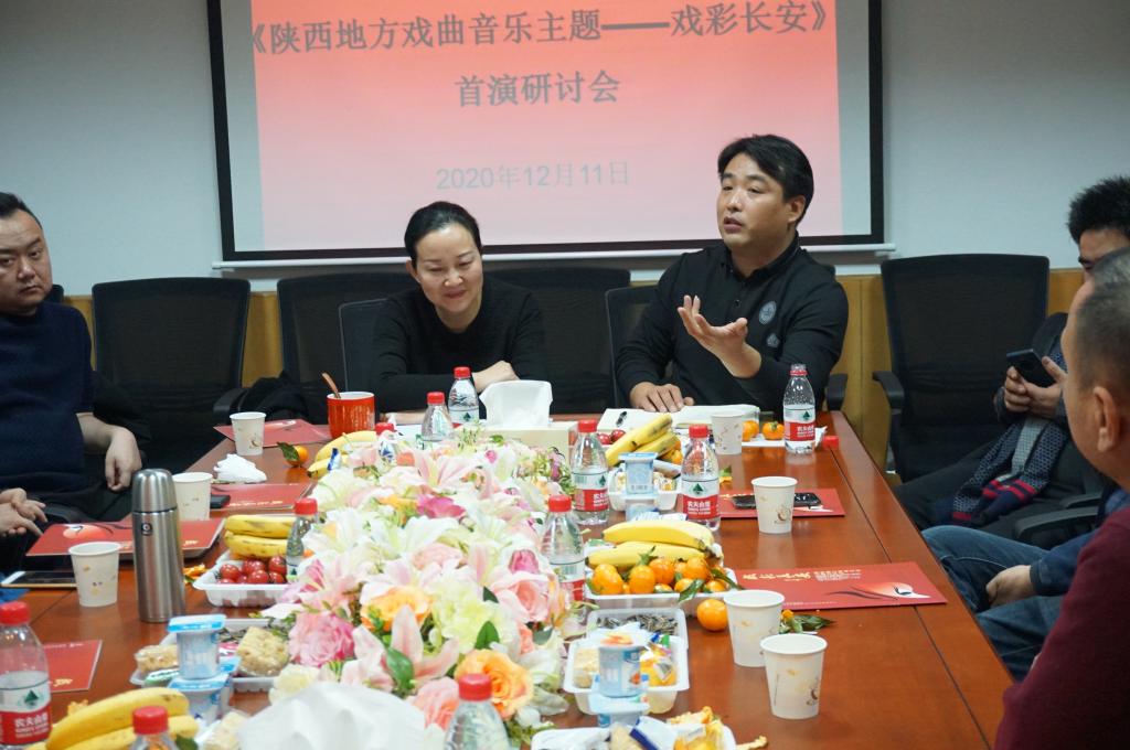 在研讨会上,呼延梅文对此次“戏彩长安主题音乐会”的首演成功向各位作曲、指挥、演奏家们的大力支持表示感谢,同时表示此次演出是该项目十场演出的首演,希望专家组的各位专家针对“戏彩长安”,从创作、演奏等各个视角,畅谈当下民乐创作与演奏的趋势和发展方向,希望能听到各方面的意见和建议,同时,也希望大家对民乐系的发展出谋划策。