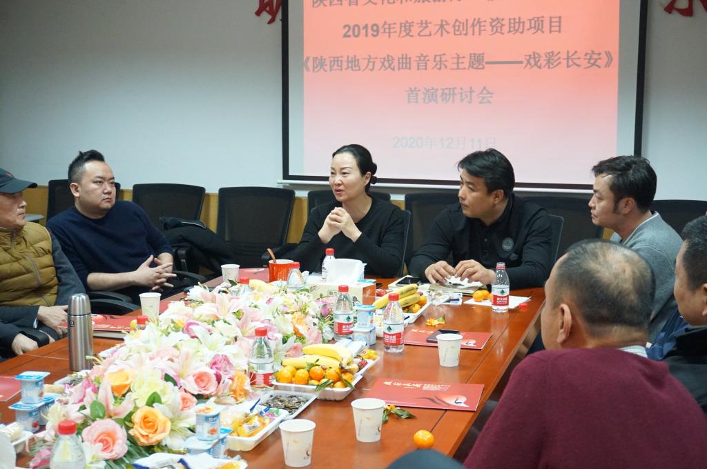 2020年12月11日下午,为总结省文化和旅游厅、省财政厅2019年度艺术创作资助项目“戏彩长安——陕西地方戏曲音乐主题音乐会”首演的相关经验,我系组织了由艺术研究院副院长邓萌、陕西省音乐家协会副秘书长侯玉峰、民乐系特聘教授程天健,作曲家韩兰魁、冯季勇、白超、郑飞,研究生部部长郭强、教务处处长侯颉、教务处副处长刘阳,民乐系副系主任高伟、高纯华以及我系教师代表任畅、徐帆、赵逊、唐进等30余人的专家组,在系会议室召开了“戏彩长安”首演研讨会。研讨会由系主任呼延梅文主持,书记王炜等全体领导班子出席研讨会。