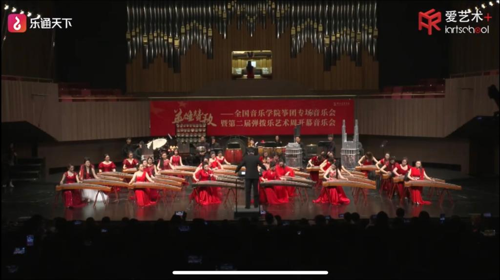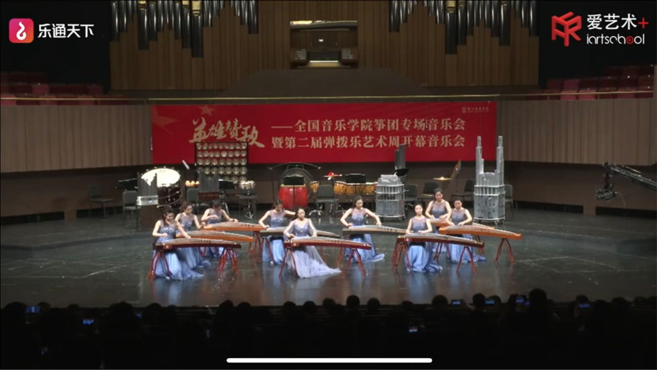 5月7、8日,“英雄赞歌—全国音乐艺术院校展演”在浙江音乐学院隆重举行,来自全国各地音乐及艺术院校的32支筝团参加,联袂带来了两场高水准的筝团音乐会。我院秦筝乐团在艺术总监樊艺凤教授,李瑜副教授、曲明明副教授悉心指导下,受邀精彩演绎了由我院著名作曲家、指挥家周煜国教授创作的古筝作品--筝与群筝《忆长安》。