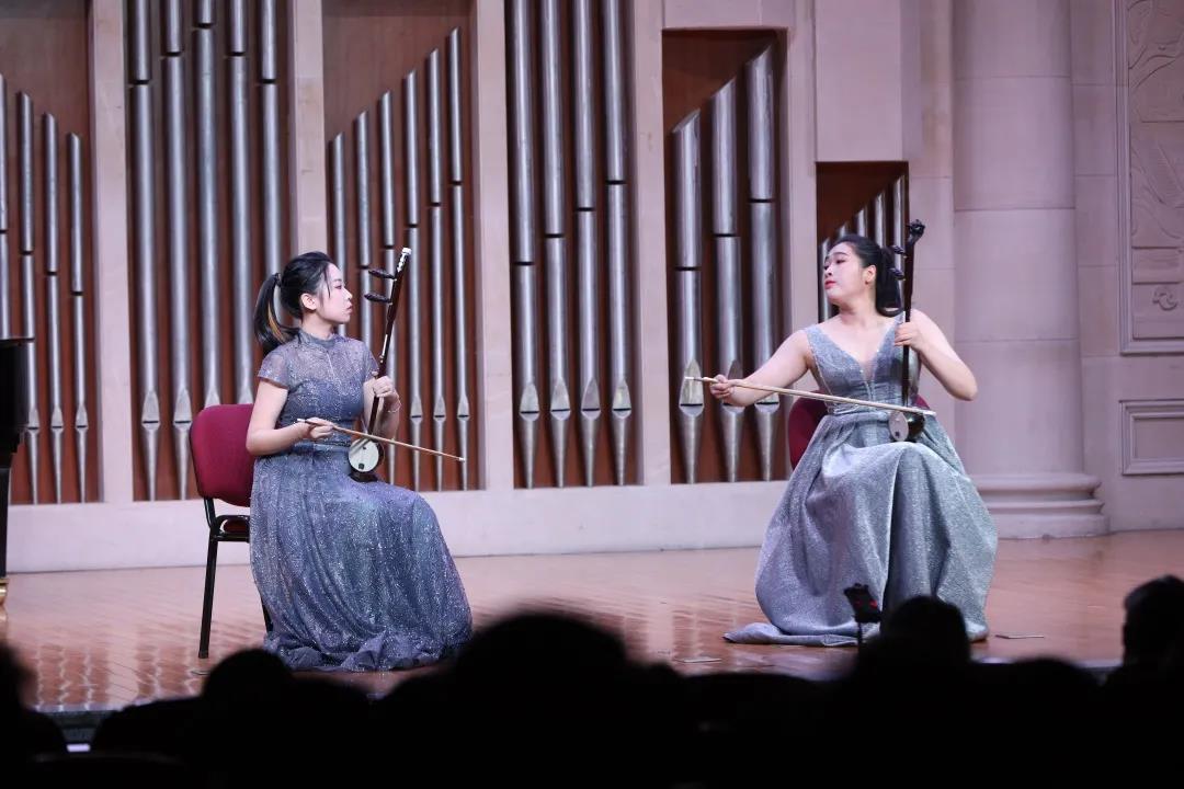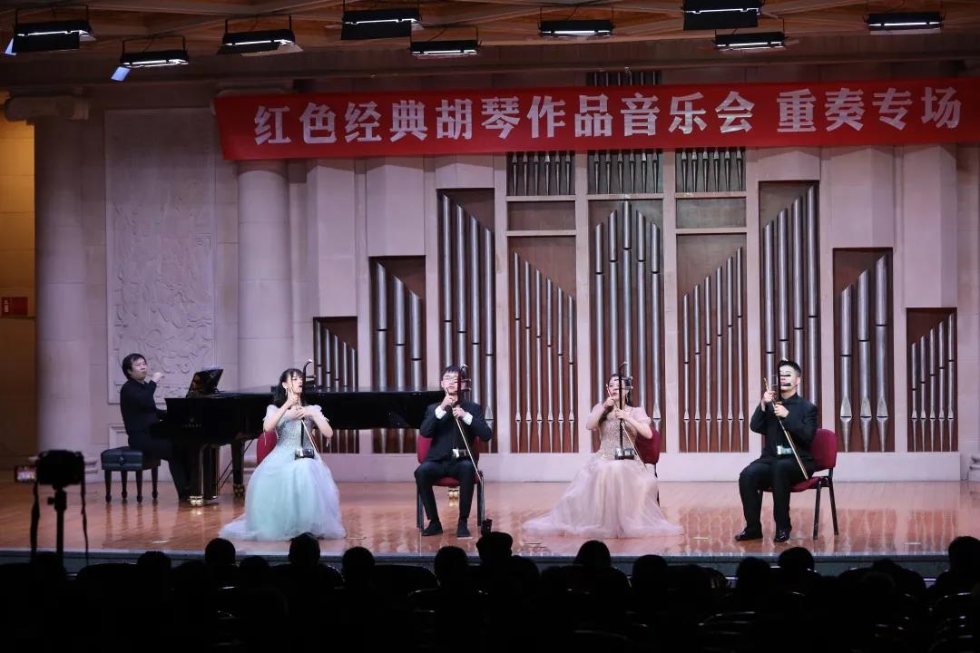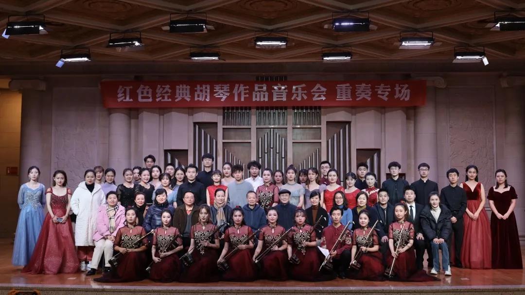 为庆祝中国共产党第十九届中央委员会第六次全体会议顺利召开,西安音乐学院民乐系弓弦乐教研室经过精心策划,首场“红色经典胡琴作品音乐会”于2021年11月16日晚在西安音乐学院学术厅成功举办。民乐系分党委书记哈睿、主任呼延梅文、“秦派二胡”创始人鲁日融等领导和专家观看了当晚音乐会。一首首催人奋进的乐曲令人心潮澎湃,仿佛让人们忘记了冬日的寒冷。