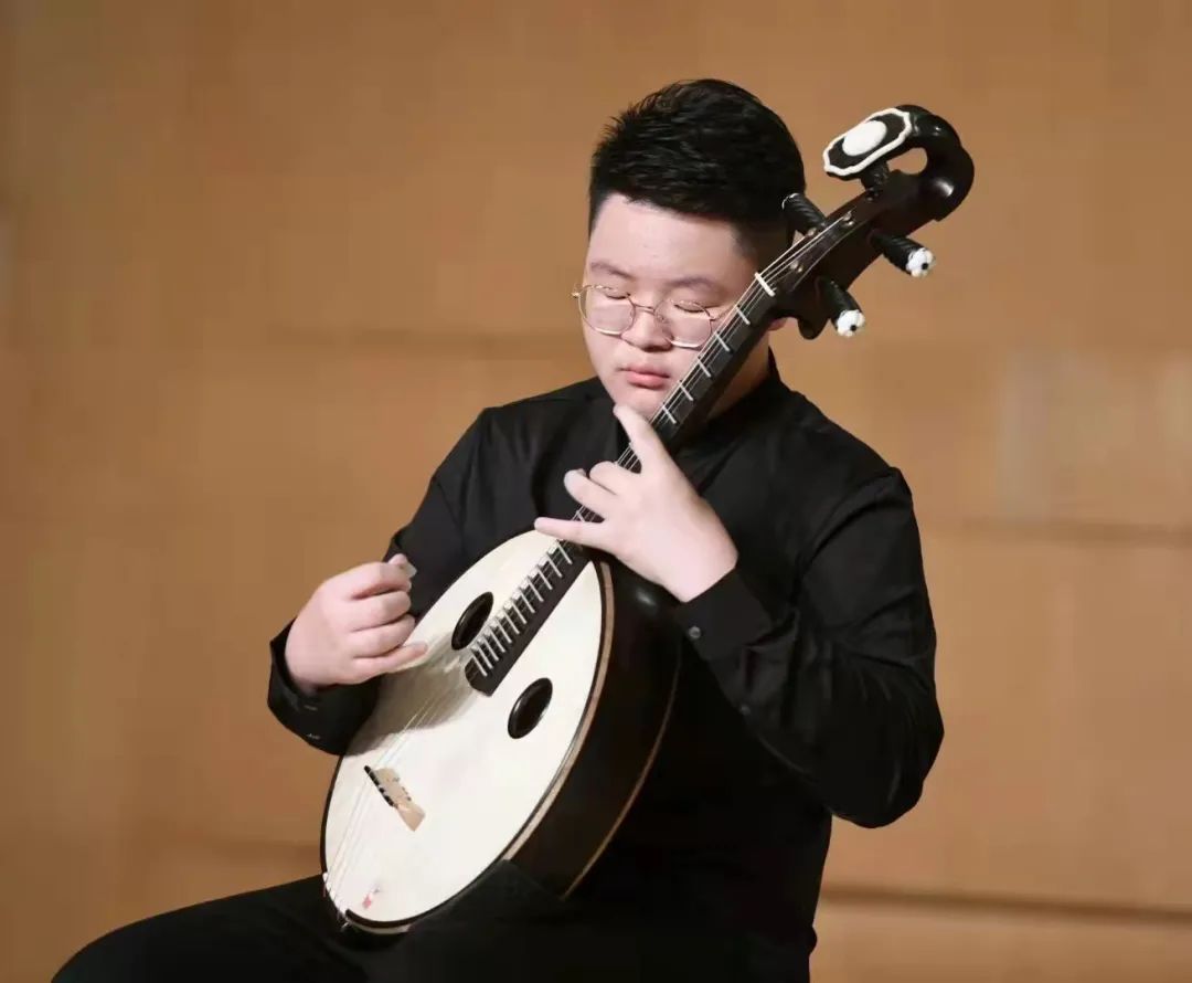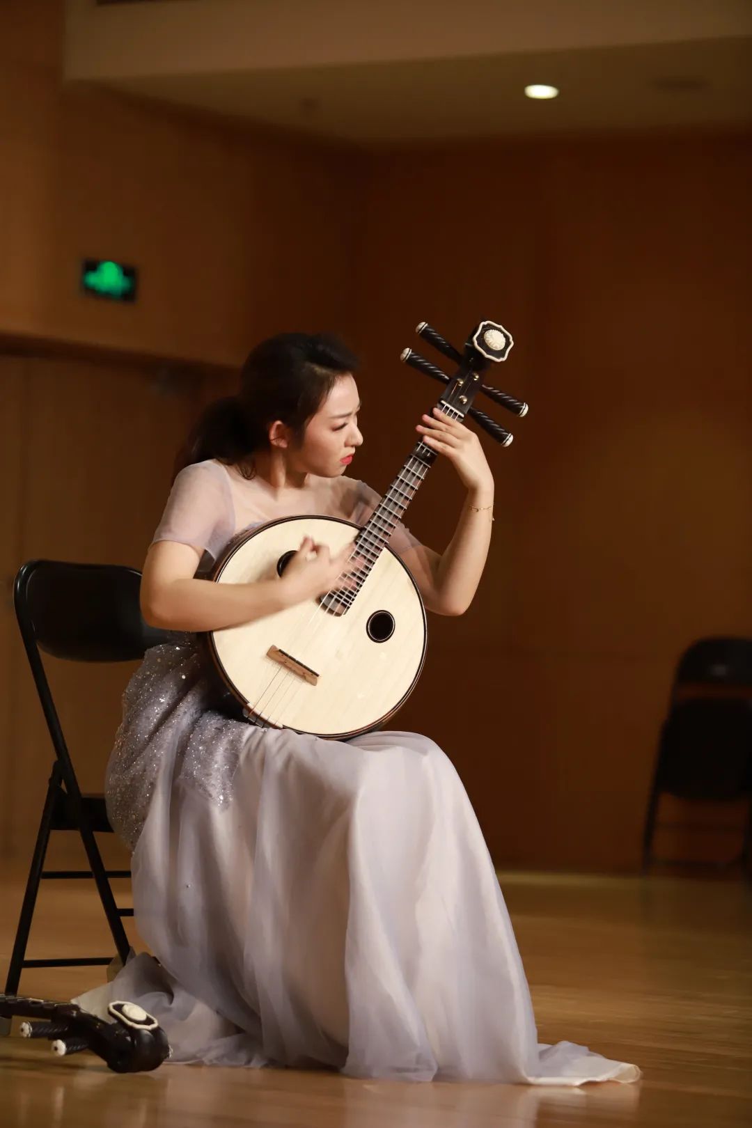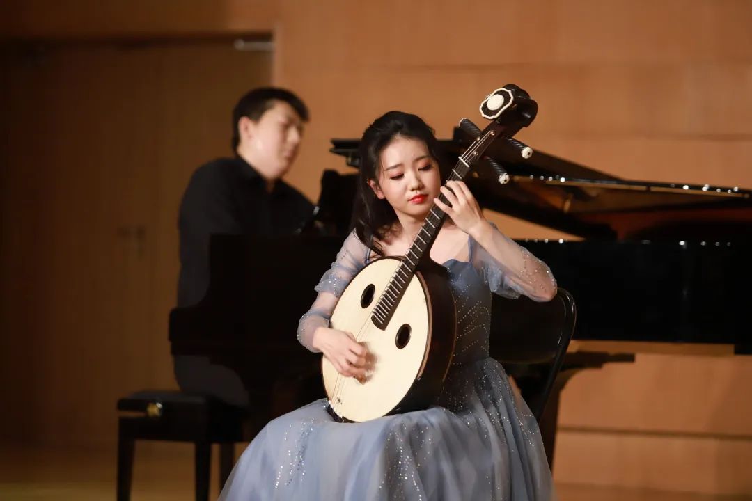 随后是本科二年级学生朱瑾源演奏的由我校作曲系符译文老师所创作的中阮协奏曲《塬上弦歌》,这首作品也是中阮首演。
