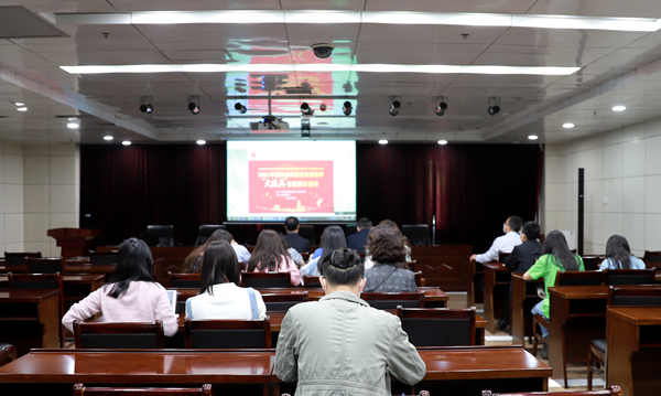 校领导和师生代表观摩线上展示活动