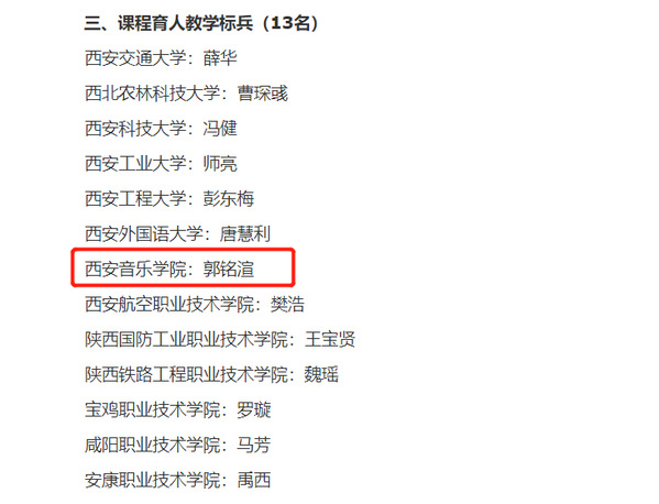 2021年度陕西高校思政课教师“大练兵”省级展示活动获奖名单于4月28日公布,我校民乐系教师郭铭渲荣获课程育人教学标兵。