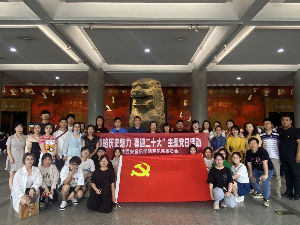 2022年6月8日,西安音乐学院民乐系教工党支部和学生党支部在陕西历史博物馆开展了“领略历史魅力喜迎二十大”主题党日活动,民乐系领导班子成员和全系师生党员共40余人参加了活动。