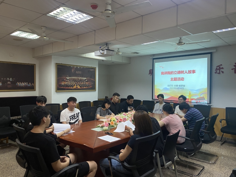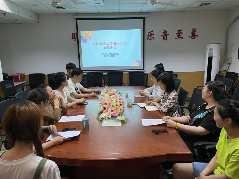 为落实我校《关于开展我讲我的‘立德树人’故事‛ 主题活动的通知》文件要求,2022年6月15日,16日两日,民乐系积极安排部署,以教研室为单位精心组织开展3场“我讲我的‘立德树人’故事” 讲述分享活动。本次活动覆盖民乐系全体专职教师,系领导班子成员以及学生代表到场聆听。
