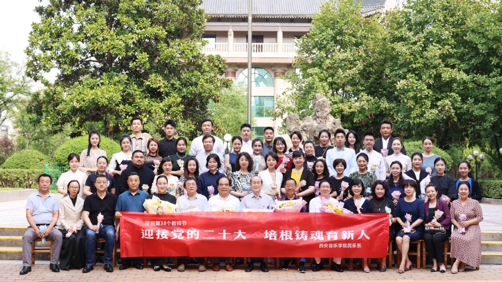 金秋送爽,桃李芬芳。2022年9月7日,在第38个教师节来临之际,为加强我系师德师风建设,加快年轻教师队伍建设,充分发挥老教师的“传、帮、带”作用,民乐系组织全系教职员工开展了“迎接党的二十大,培根铸魂育新人”庆祝第38个教师节主题合影留念活动。在蓝天白云和绿茵的映衬下,几代民乐人的笑脸出现在镜头之前,用影像定格美好的瞬间,共同庆祝属于老师们自己的节日。