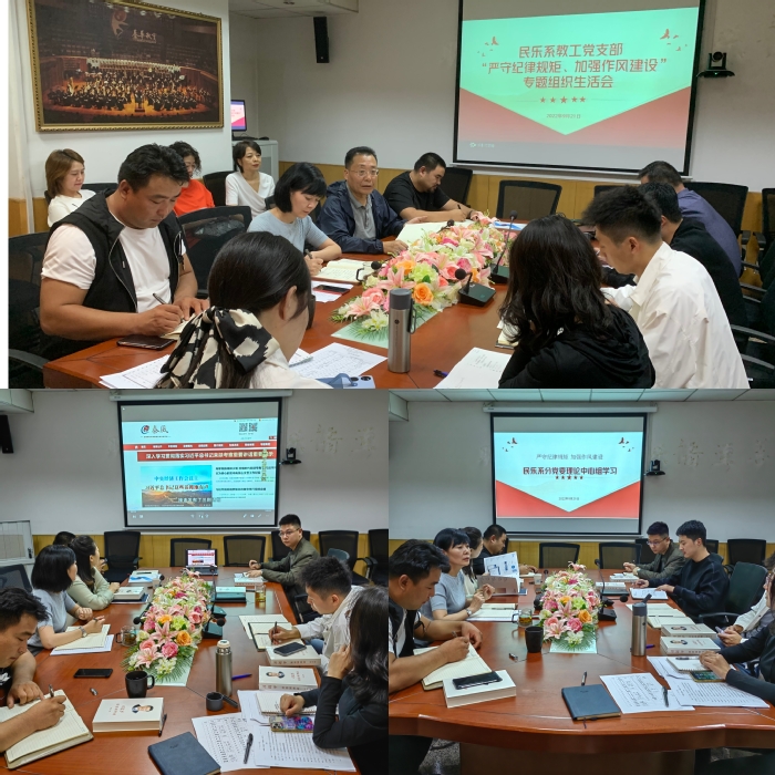 根据我校《关于在全校开展纪律教育学习宣传月活动的通知》文件要求,民乐系积极安排部署,以“严守纪律规矩、加强作风建设”为主题,扎实开展“四个一”活动,深入推进作风建设,教育引导广大党员和教职工树牢法纪意识、严明纪律作风,大力推进清廉学校建设,以更高标准、更严要求、更硬作风为学校高质量发展提供坚强保证。