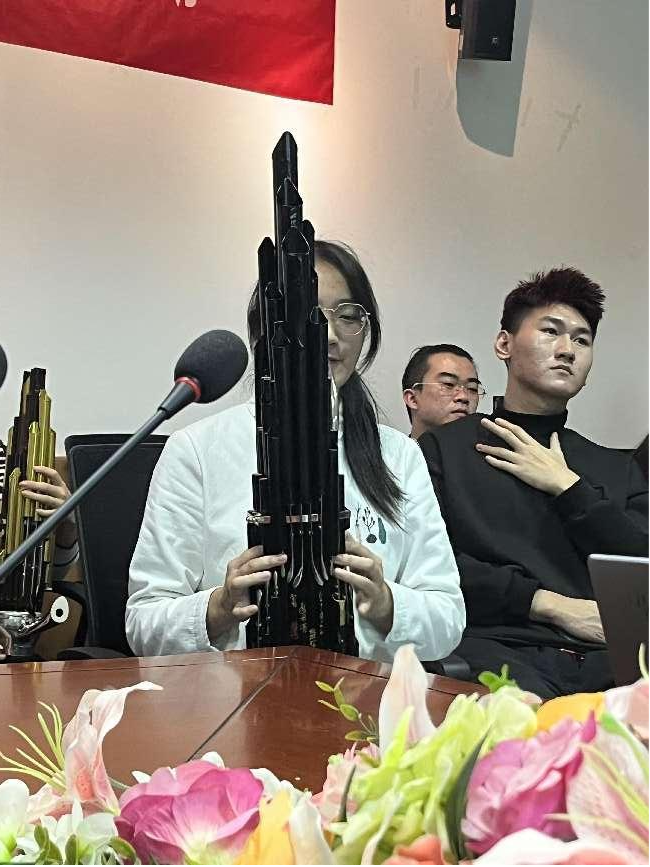 王磊教授先后从笙作品创作的历史脉络、新时代笙作品的特点、演奏者二度创作的相关理念及读谱思路,结合演奏,为我们细致、生动的描绘了他的演奏理念及读谱方法。