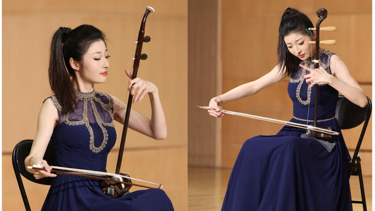 音乐会中,使用上世纪40年代制作的丝弦二胡演奏的古曲《汉宫秋月》成为一大亮点。丝弦特有的温润音色与浑厚质地,为这首经典作品增添了更为深沉的历史意境与艺术感染力,引领观众沉浸于传统音乐的典雅韵味之中。