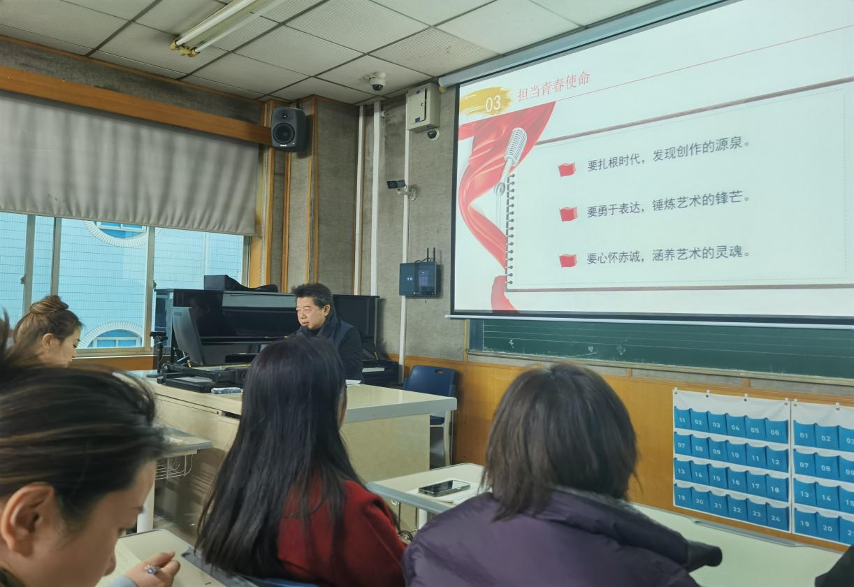 为深入贯彻落实立德树人根本任务,全面加强党对思想政治理论课建设的领导,扎实推进“艺术思政”育人模式走深走实,12月25日,西安音乐学院副院长陈勇教授以“听长征故事,品红色音乐”为题,为民乐系、现代音乐学院2025级学生讲授专题思政课,引导学生从艺术视角感悟长征精神、传承红色基因,为院系深化思政育人与专业教学融合提供有力指引。活动由现代音乐学院分党委书记周冰主持,民乐系、现代音乐学院领导班子及全体辅导员参加。