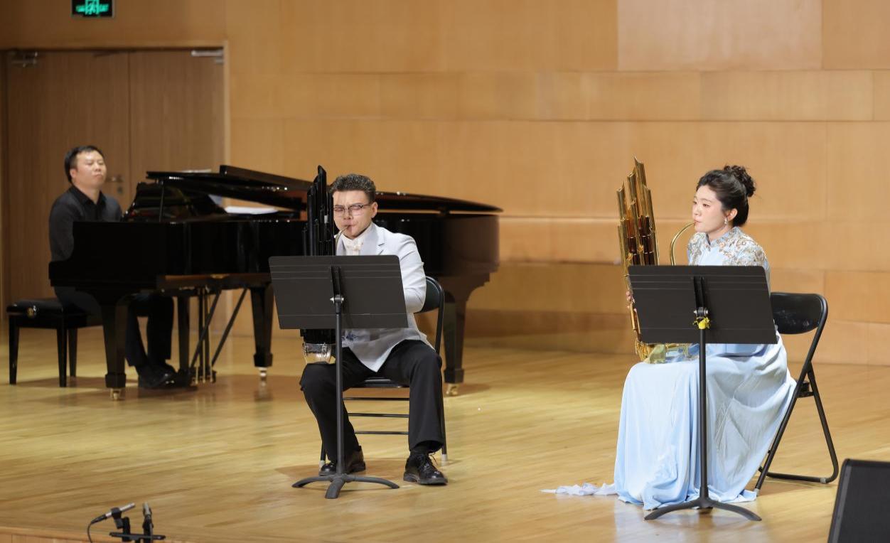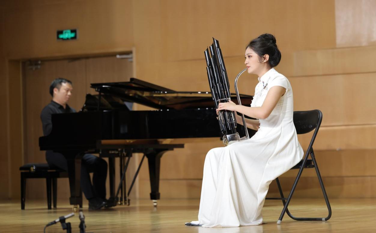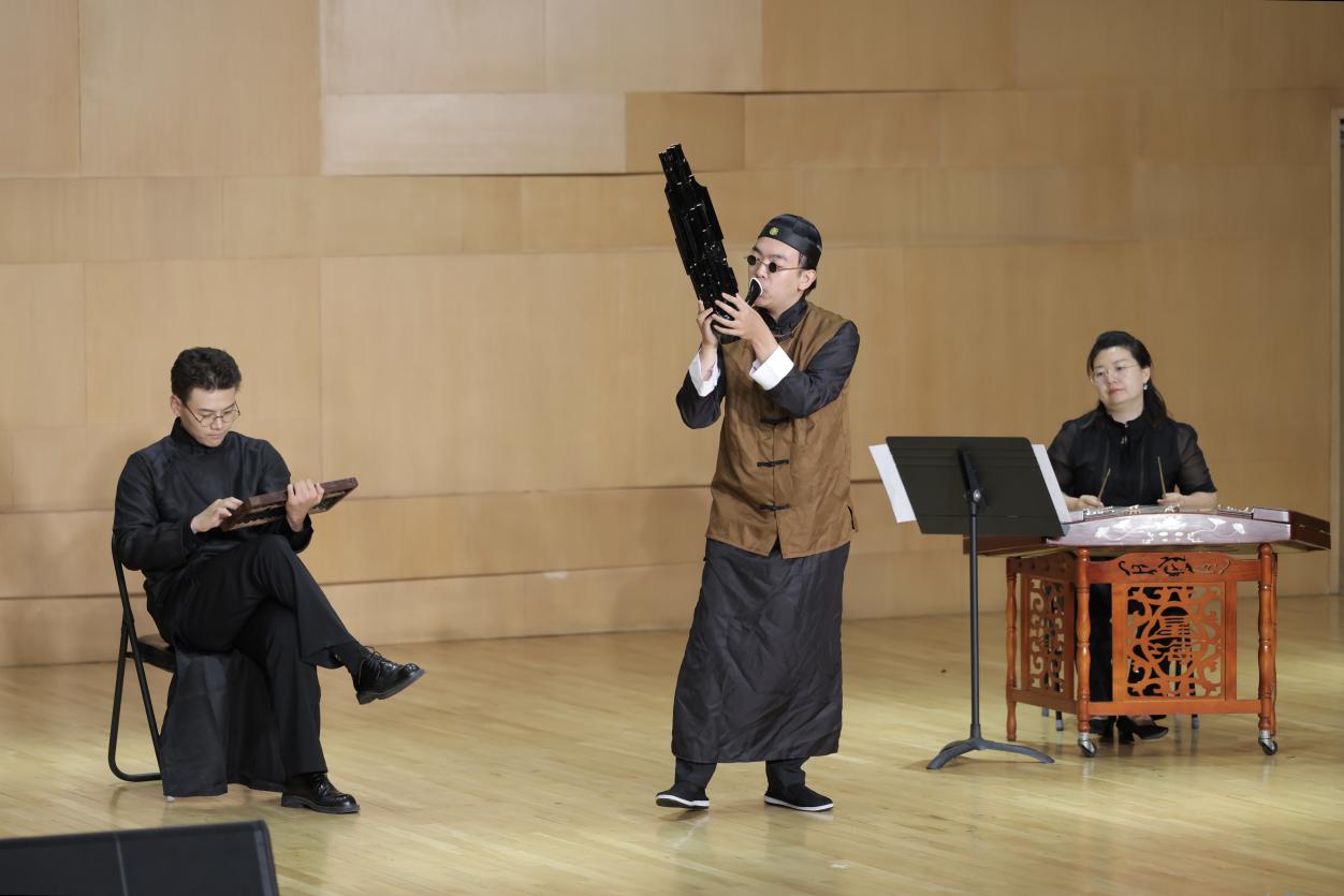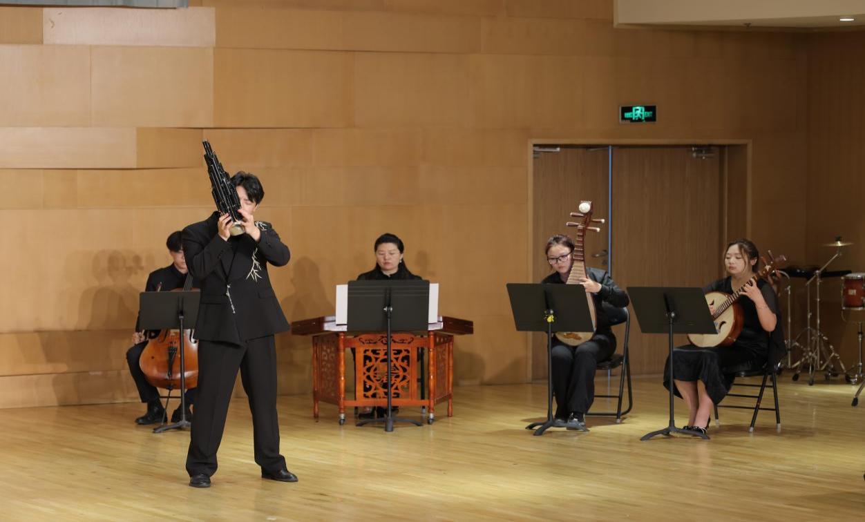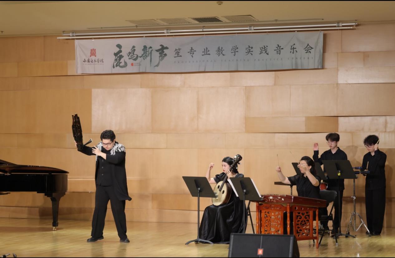 2025年6月16日晚7:30,西安音乐学院艺术中心室内乐A厅内,一场聚焦于中国传统乐器笙的专业教学实践音乐会如期举行。本场音乐会由民乐系主办,民乐系吹打教研室承办,民乐系笙专业教师赵洪斌、张亚楠、刘立昊共同策划,特邀钢琴艺术指导李振中,扬琴艺术指导王婕,以及多位民乐系在读本科生、研究生共同完成。