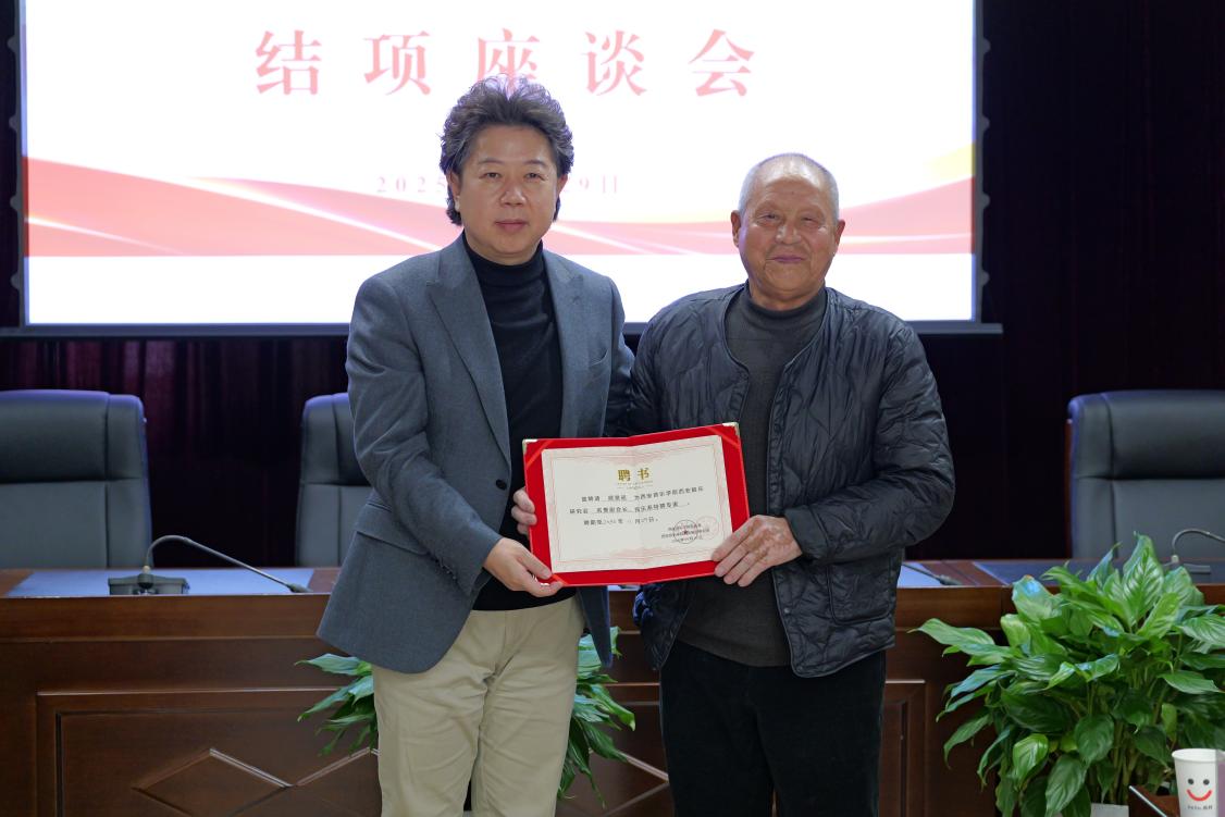 在热烈的掌声中,我校副院长陈勇教授为中国艺术研究院音乐研究所所长研究员李宏锋、中央音乐学院教授褚历、陕西省艺术研究院副院长研究员邓萌、周至集贤东村鼓乐社社长顾景昭、周至集贤西村鼓乐社社长田孝梨、何家营鼓乐社社长郑亚福、都城隍庙鼓乐社副社长张西鸣、古红庙古铜器社社长何克荣等专家颁发了聘书。此举旨在为西安鼓乐的保护、传承与创新注入新的活力,共同推动这一古老艺术迈向新的高峰。