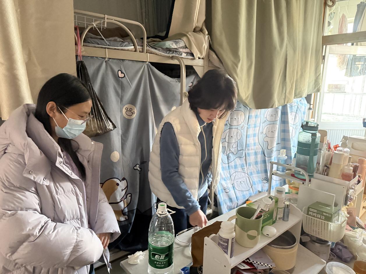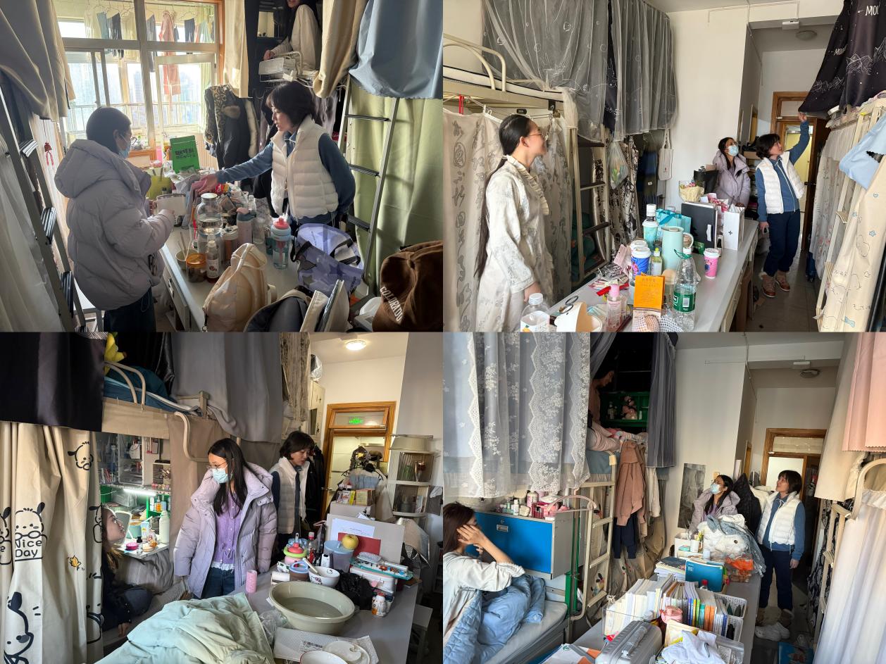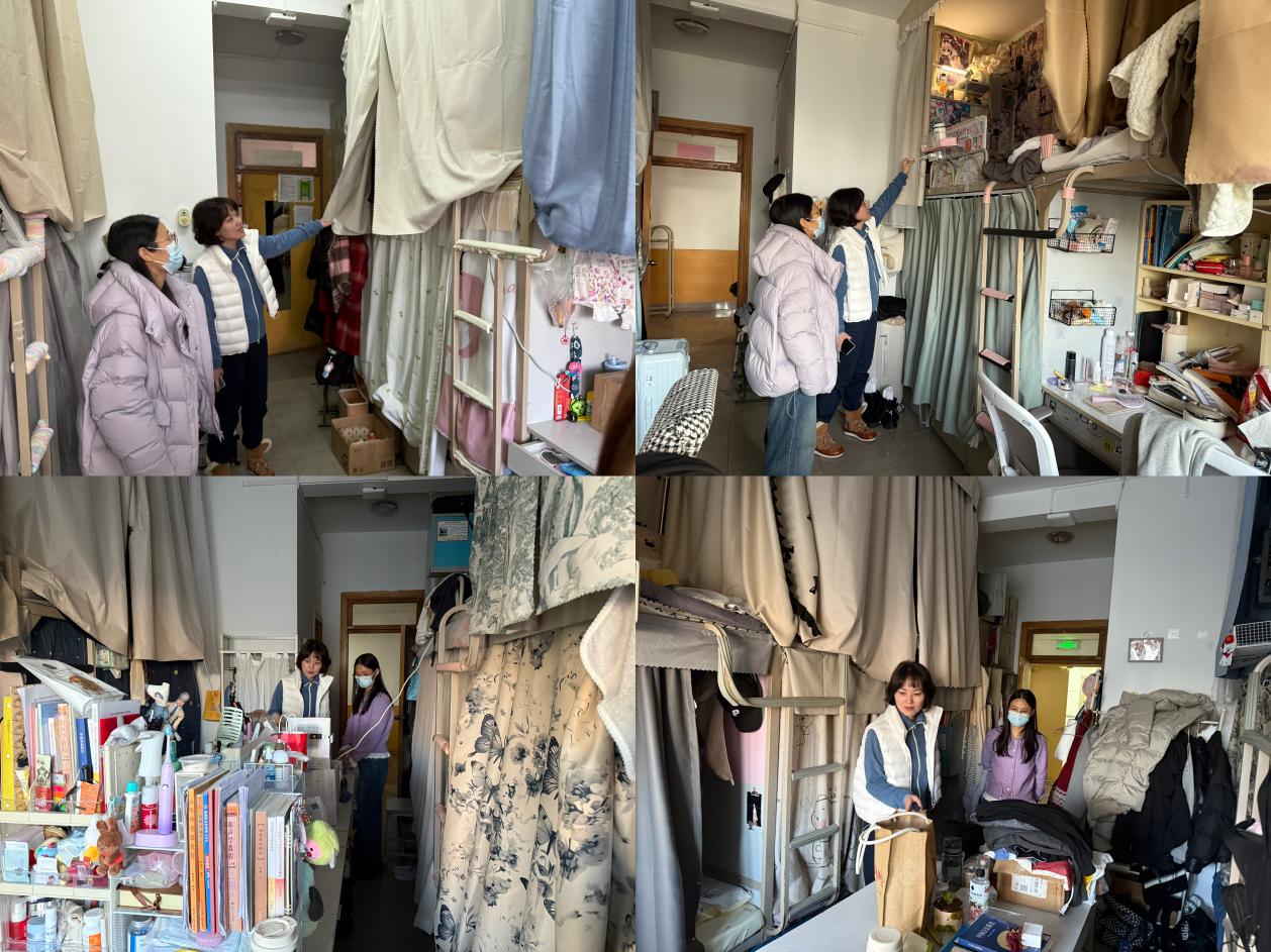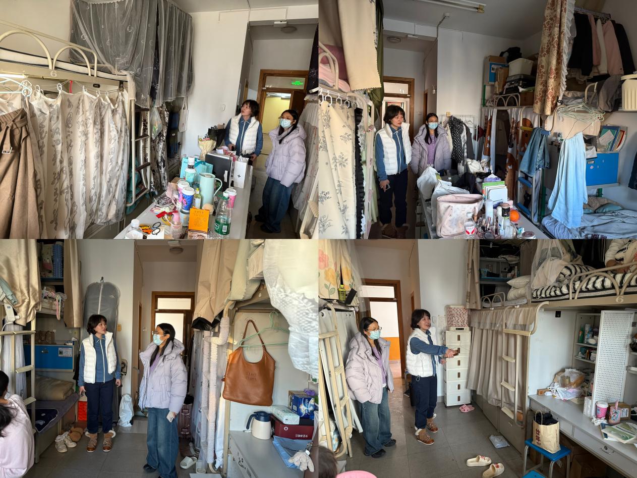 11月27日下午,全体辅导员及学生班主任深入学生宿舍开展安全卫生专项检查工作。检查过程中,辅导员重点对宿舍用电安全、消防设施、卫生状况、物品摆放等方面进行了全面细致的检查,对插座重荷、杂物堆积等发现的问题,当场要求学生立即整改。宿舍是学生学习生活的重要场所,保持良好的宿舍环境不仅关系到学生的身心健康,也是校园安全的重要保障。两位辅导员特别提醒同学们要注意消防安全、用电安全,严禁使用违规电器,做到人走断电,不私拉乱接电线,确保宿舍安全。同时,在交流中了解大家的学习和生活情况,听取了学生对宿舍管理的意见和建议。