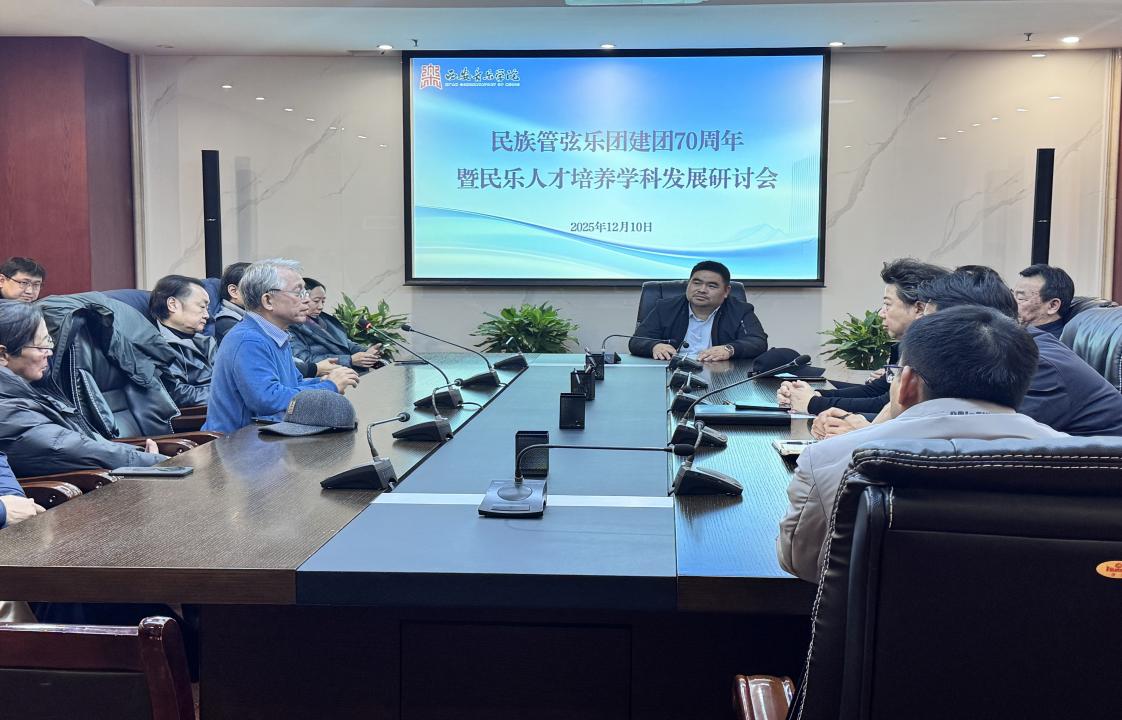 次日(12月10日)上午,乐团建团70周年暨民乐人才培养学科发展研讨会紧随举行。学院领导、历任团长、杰出校友、业界代表及教师齐聚,共商发展大计。研讨会回顾了乐团七十年“扎根教学、专注创作、投身实践”的优良传统。学院领导副院长陈勇强调,乐团的生命力源于对民间音乐传统的坚守与“以创促教、以演带学”的实践精神。