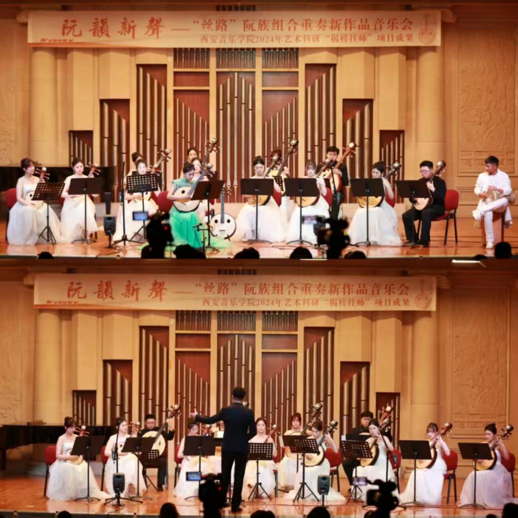 2025年12月11日19:30,由西安音乐学院民乐系合奏教研室、弹拨乐教研室主办,王慧副教授指导的阮韵新声——“丝路”阮族组合重奏新作品音乐会,在学校学术厅圆满落幕。本场音乐会也是学校2024年艺术科研“揭榜挂帅”项目成果汇报演出。