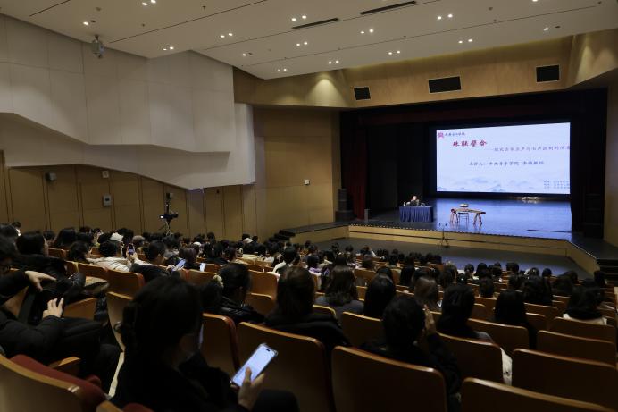 李萌教授以弦制发展脉络为核心,结合学术研究与实践案例,多维度、有深度地解读筝乐艺术。她从梳理筝曲的调式运用、筑牢文化传承根基入手,详解七声弦制研发的技术要点与中外文化交流价值,层层深入传递专业养分。针对五声与七声弦制的核心差异,李萌教授聚焦弦色、弦制及音域展开系统解析,明确五声筝与七声筝音域的表达张力。讲座中理论与实践紧密结合,她以经典曲目为载体,对比同一作品在两类弦制上的演奏逻辑,通过视觉与听觉对比引导学生从弦制运用、情感表达等方面精准把握艺术特色,深化对古筝弦制创新与实践运用的理解。